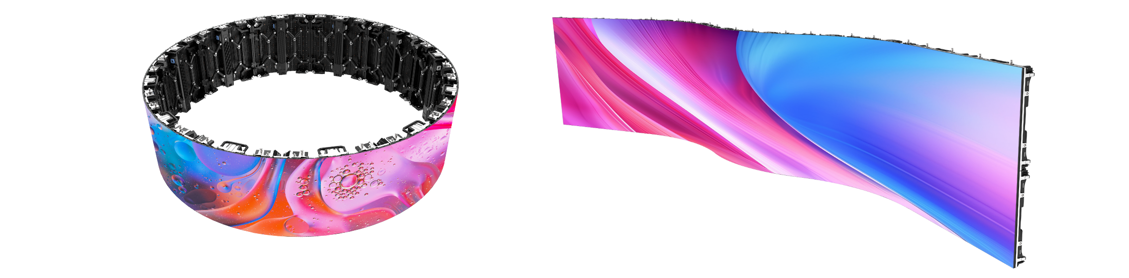 支持弧形安裝,最大角度:±30°,單個(gè)箱體可以實(shí)現(xiàn)完美的“S”曲線,具有超高的靈活度,無論是大角度的內(nèi)外弧造型,還是圓柱、90°圓弧直角造型都能輕松打造,多種創(chuàng)意拼接配合不同場景使用。